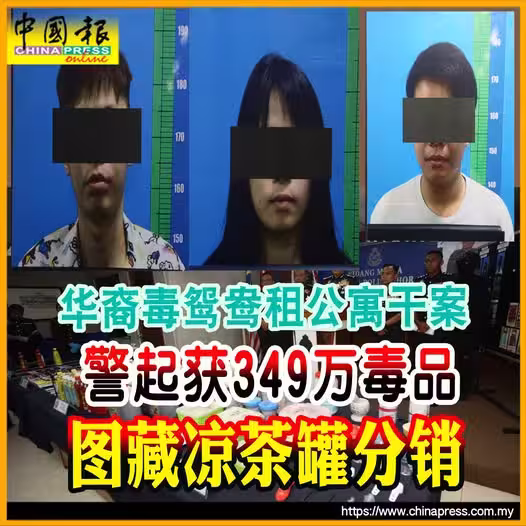 (新山25日訊)毒鴛鴦聯同一名男子租下圍籬公寓,將毒品分拆裝入各種涼茶罐及包裝內,企圖掩人耳目,再推銷至本地娛樂場所,警方逮捕3人,起獲總值349萬令吉的各類毒品!