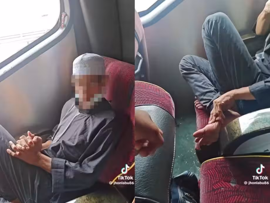 一名男子在長途巴士內吸煙和吸收,弄濕車廂地板,引發譴責。(取自kosmo)