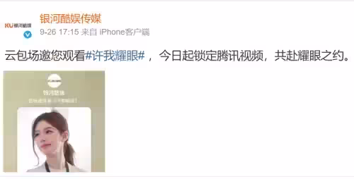 中國女星趙露思與經紀公司「銀河酷娛」上個月爆出解約風波後,與陳偉霆主演的新劇《許我耀眼》在本月26日突襲開播。而在無預熱宣傳的情況下,該劇首日熱度即破2萬7000次觀看,交出亮眼成績,被外界稱為「成功反擊」。不料近日突然傳出,銀河酷娛為她包場力挺,還在微博PO照宣傳,讓外界猜測雙方是否已經和解。