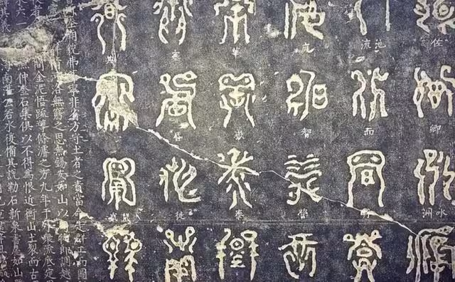 大家都知道,這碑上的文字難認,歷代很多人試著釋讀,但沒一個得到公認。唐代韓愈和劉禹錫就寫詩提到過,韓愈說它「古文奇字生輝光」,劉禹錫形容字像「璃虎」。