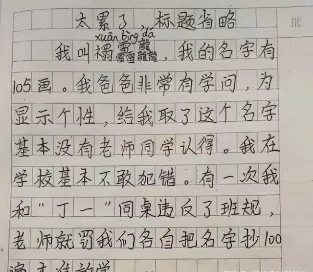 小學生因名字走紅 全名72筆劃,班導崩潰:我教不了你....
