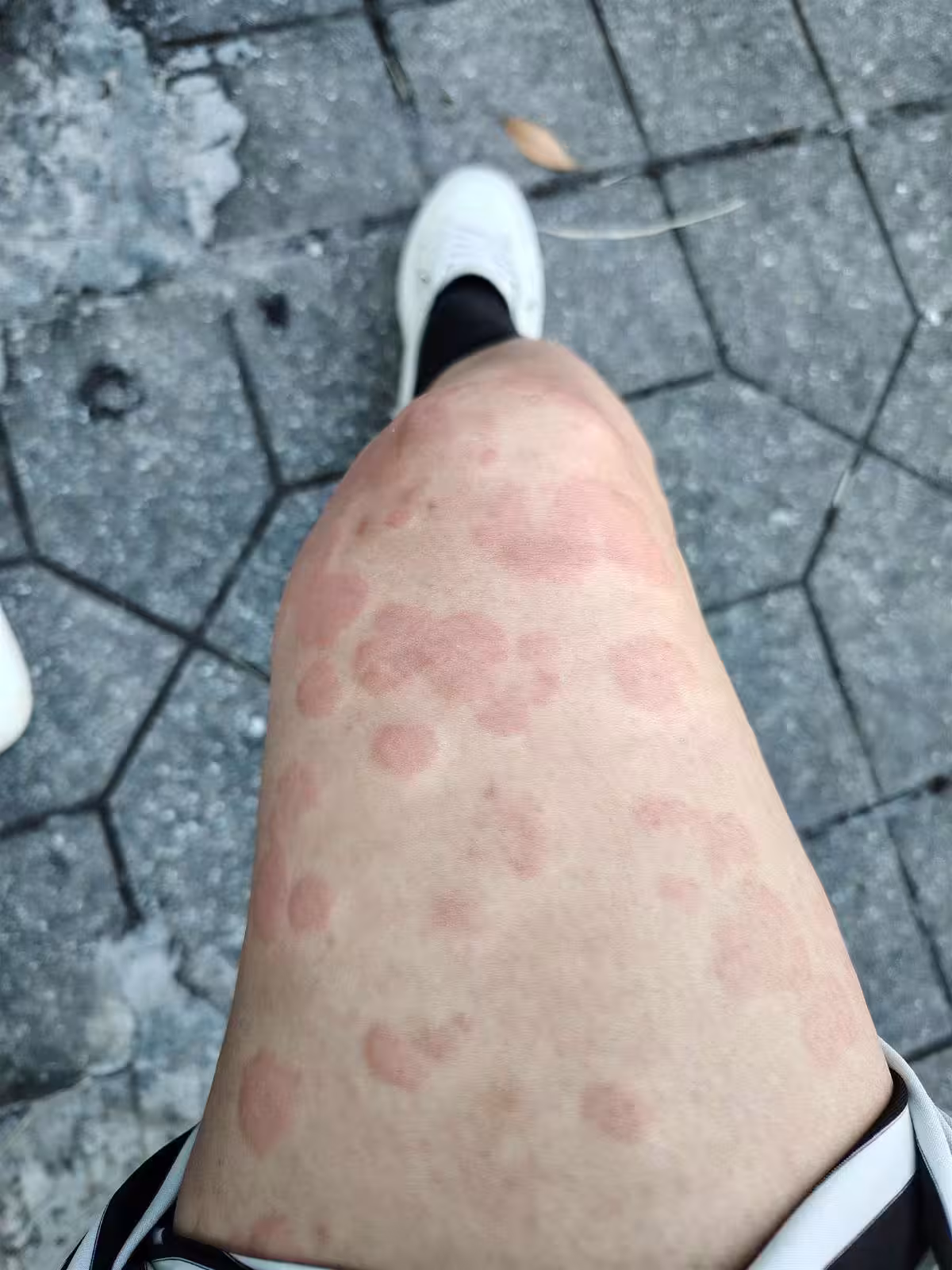 上周三傍晚,28歲的林女士像往常一樣去菜市場買菜。穿著短褲的她穿梭在攤位間,並未察覺任何異常。然而回家後,她突然感覺雙腿發癢,低頭一看,頓時嚇得倒吸一口涼氣——兩條腿上爬滿了紅斑!「當時腿上的紅斑還在不斷擴散,摸上去發燙,又癢又痛。」驚慌失措的林女士趕緊拍下照片,發到社交媒體求助。照片中,她的小腿布滿放射狀的紅斑,在白皙的皮膚上顯得格外刺眼。