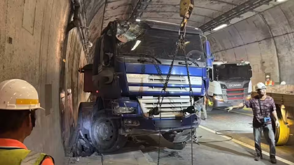 砂石車東澳隧道猛撞小客車再撞牆壁 民眾驚呼「沒事沒事」
