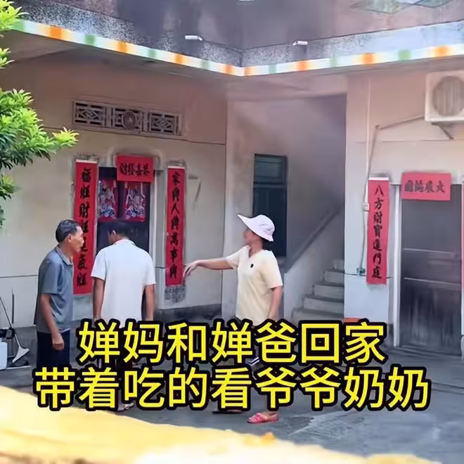 全紅嬋媽媽回爺奶家送禮,翡翠項鍊手鐲都摘下來了,騎電車很樸素