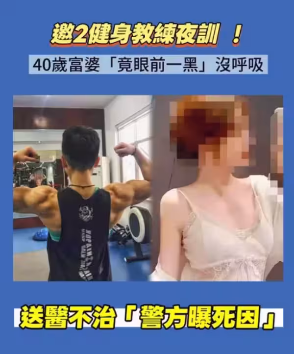 40歲富婆邀2健身教練夜訓!「竟眼前一黑」沒呼吸,送醫不治「警方曝死因」
