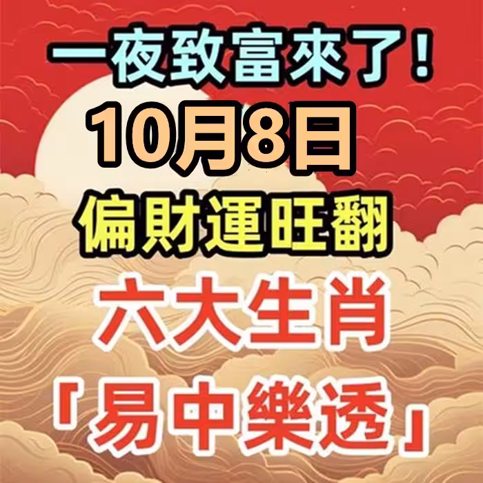 一夜致富來了!10月8日偏財運旺翻,六大生肖「易中樂透」