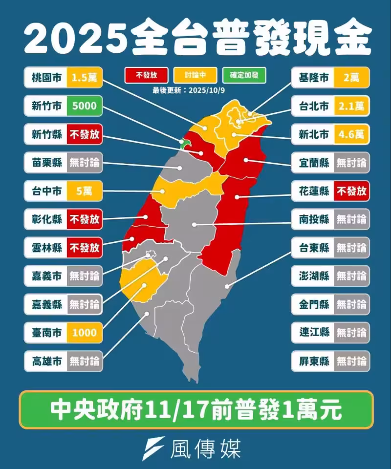 普發1萬元確定!新竹市宣布加碼5000元,台北、新北、台中...各縣市加碼進度曝光
