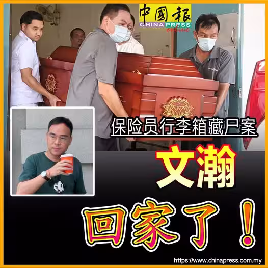 遭割喉藏行李箱棄屍的31歲華裔保險從業員李文瀚,其遺體於今午3時32分,在父親及多名親友的陪同下,領回檳城壟尾治喪。