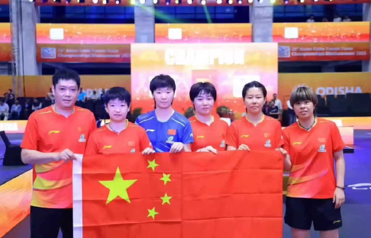 印度亞錦賽女團決賽的硝煙散盡後,頒獎台旁的一個細節,比冠軍獎盃更讓球迷心頭一暖。當中國女乒奪冠合影環節開啟,主辦方攝影記者在場邊吆喝著組織隊伍,邱貽可指導帶領孫穎莎、王曼昱、陳幸同、王藝迪早已準備就緒,唯獨剛結束第三場比賽的蒯曼因處理事務姍姍來遲。
