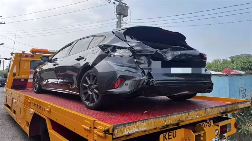 遭遊覽車"二度追撞" 小客車變形險成夾心餅乾