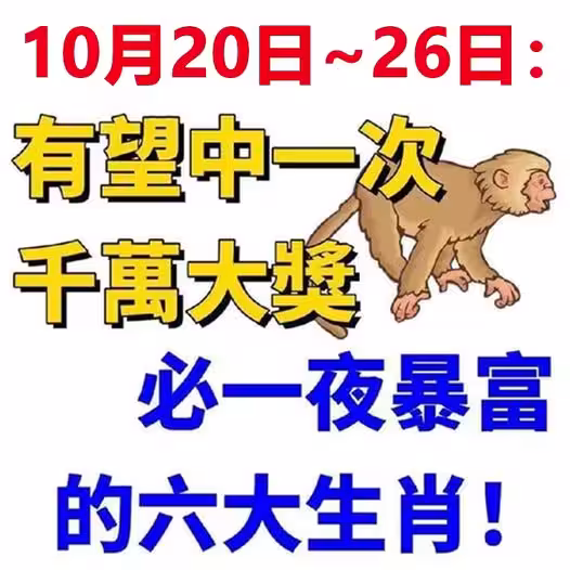 10月20日~26日:有望中一次千萬大獎 ,必一夜暴富的六大生肖