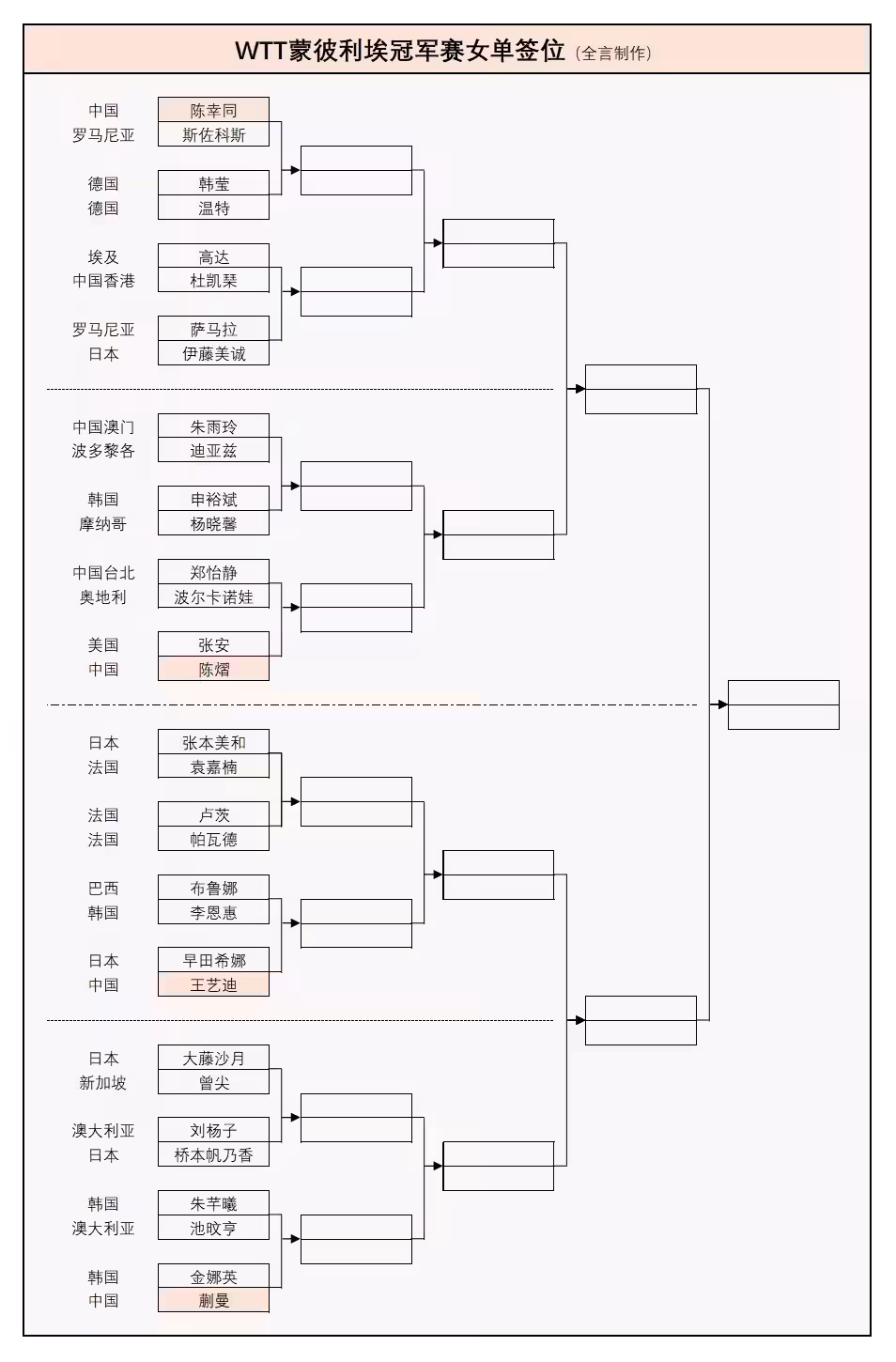 __WTT冠軍賽:女單簽位公布!國乒首輪迎戰早田希娜,有希望包攬4強