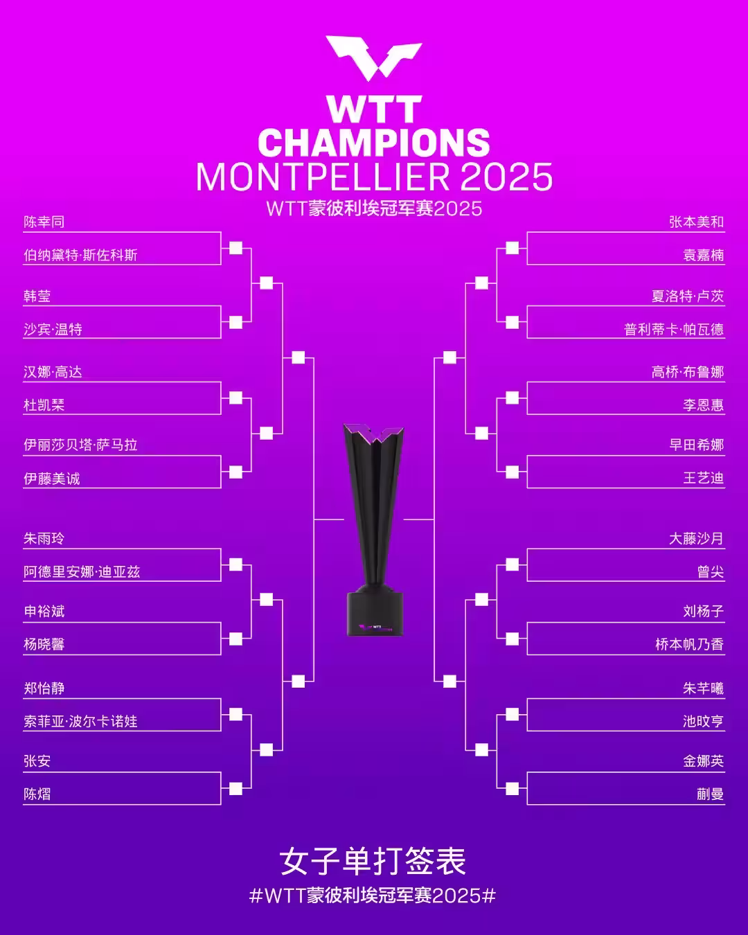 __WTT倫敦球星賽國乒女雙奪冠,蒙彼利埃冠軍賽首輪賽程出爐