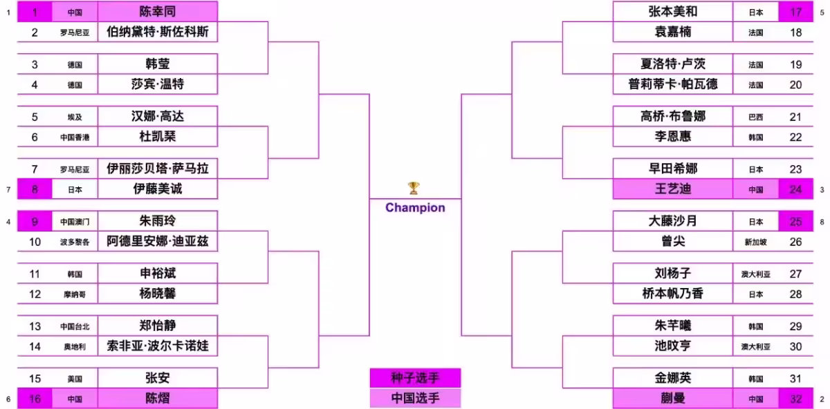 王藝迪迎戰近期狀態不錯的早田希娜,必然是一場硬戰,雙方的交鋒各有勝負,3/4區還有張本美和,剛在倫敦球星賽斬獲女單冠軍。