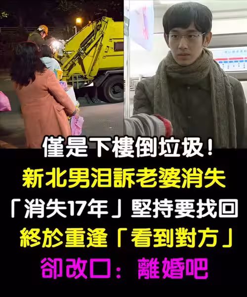 只是下樓倒垃圾!新北男淚訴老婆「消失17年」堅持要找回,終於重逢「看到對方卻改口」:離婚吧~