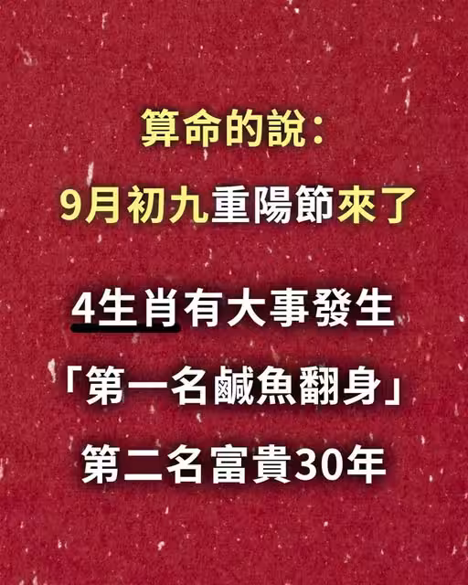 算命的說:9月初九重陽節來了,4生肖有大事發生「第一名鹹魚翻身」第二名富貴30年!