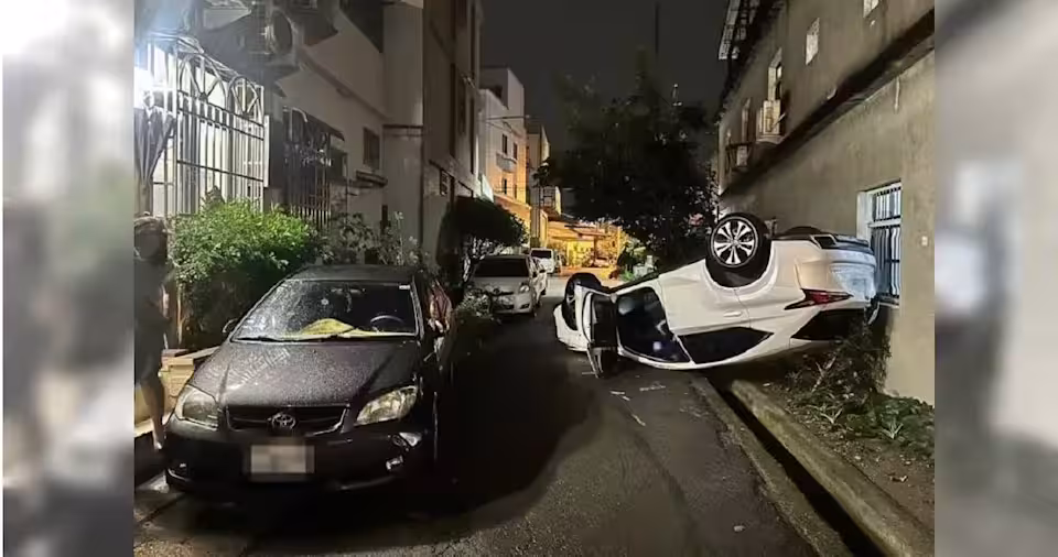 台中市大雅區28日凌晨上演一場離奇車禍,59歲許姓男子酒後開車,不僅撞上停在路邊的車輛,竟整台轎車翻覆「懸空卡在民宅牆上」,仿佛電影特效般的景象,讓民眾驚呼連連。警方趕抵現場後,發現許男滿身酒氣,酒測值明顯超標,當場依《公共危險罪》送辦。