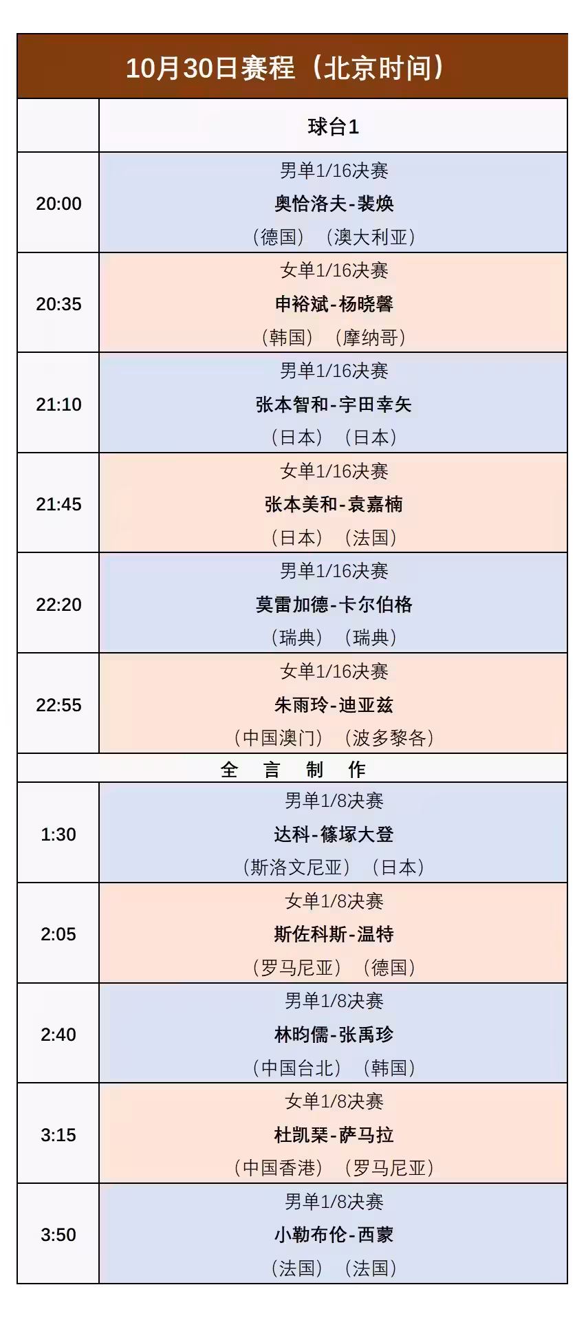 __WTT法國冠軍賽:10月30日賽程公布!張本兄妹登場,朱雨玲首秀