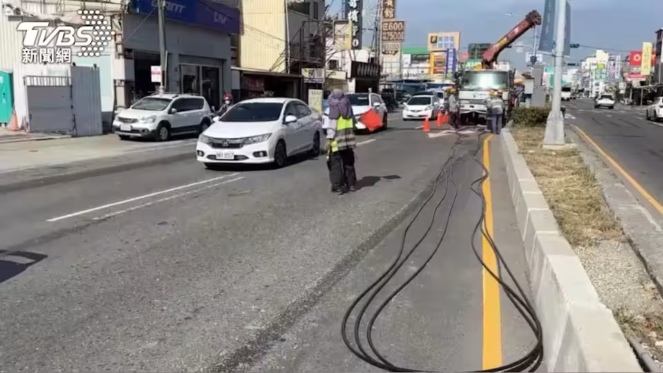 超粗電纜線躺路中!機車騎士「被擊落」重摔翻滾 往回看傻眼 警:最高罰15萬