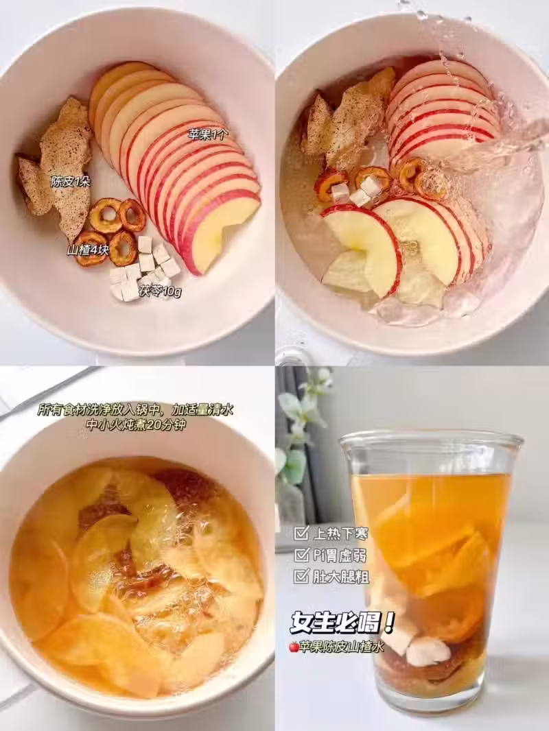 煮熟的蘋果膳食纖維被軟化,更容易消化和吸收,這幾種食材搭配在一起,具有很好的潤腸通便、消積化食的功效,肚子脹氣不消化的姐妹們喝起來!