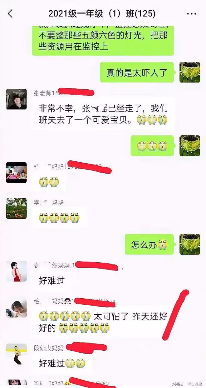 另外,網絡上曝光了一張疑似重慶路小學某班級家長聊天群的截圖,內容顯示該班級有一名學生在此次事故中不幸喪生,群內眾多家長留言表達悼念之情。
