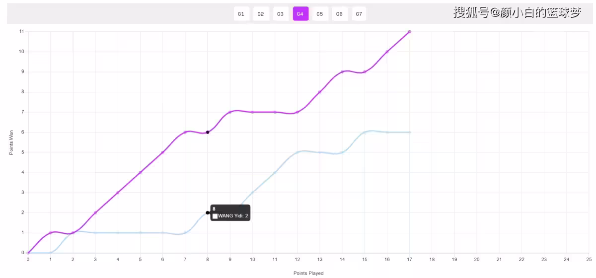 王藝迪大比分3-0領先後,我感覺第四局她有些鬆懈,開場就被張本美和打出一波6-1,這一波6-1助長了張本美和反撲的氣焰,隨後張本美和7-2、9-5繼續領先,最終11-5扳回一局。