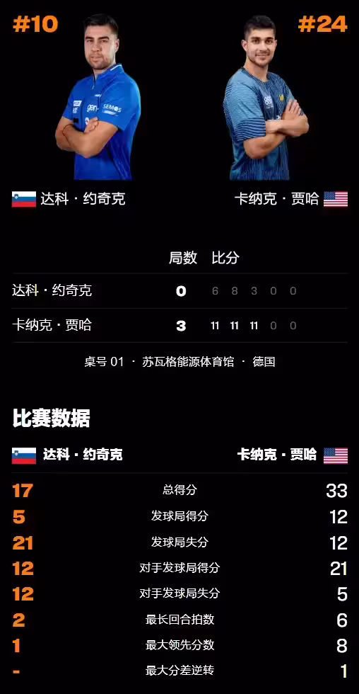 上一站WTT法國蒙彼利埃冠軍賽冷門迭出,達科是少數能晉級8強的單打前八號種子選手,結果這次在法蘭克福沒挺過第一關,的確是勝負無常,那就讓我們繼續靜觀比賽的動態吧!
