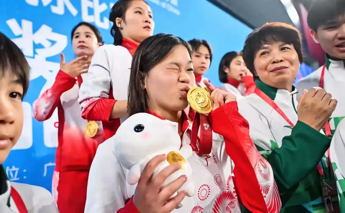 全紅嬋現場娃娃雨下的太大,何威儀教練秒變全紅嬋的娃娃搬運工:秒變小烏龜專業戶