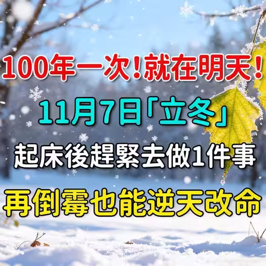 100年一次!就在明天!11月7日「立冬」起床後趕緊去做1件事,再倒霉也能逆天改命!