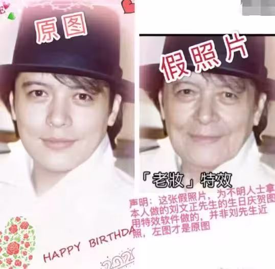 原來這張照片的由來十分暖心,是因為11月12日是劉文正的生日,由於他本人並未使用任何社群媒體平台,親近的友人便集體製作了一段祝福影片,並通過電子郵件寄送給他,有不明人士則用了這張慶賀圖,加上老妝的特效。