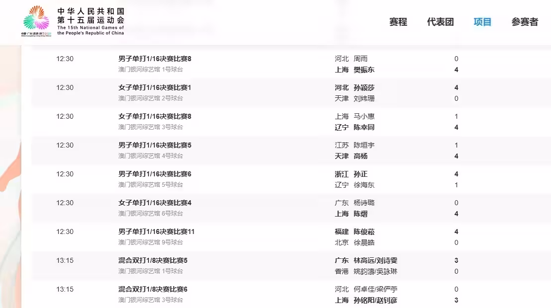 11月10日,正在澳門進行的第十五屆全運會桌球項目展開男單、女單、混雙的多場角逐。樊振東、孫穎莎、陳幸同、陳熠等知名選手均取得勝利,廣東隊的混雙組合林高遠/劉詩雯在本屆全運會的首戰也順利取勝,晉級下一輪比賽。