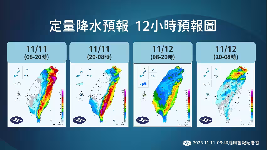 宜蘭明日雨勢將趨緩,但花東持續大雨可能符合標準。
