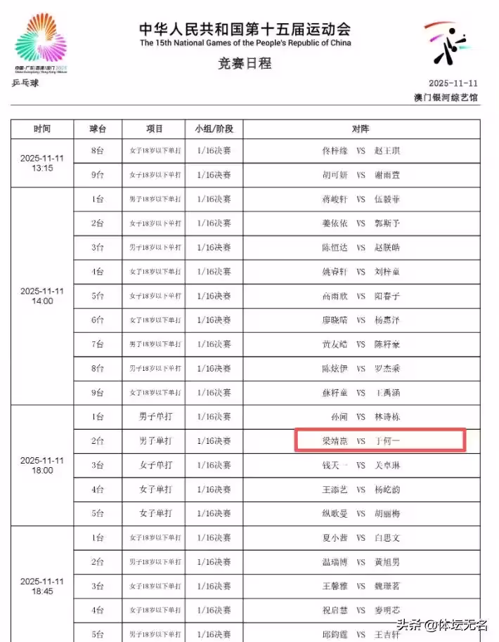 調整!11月11日央視直播全運會桌球有變,陳夢、鰻魚、劉詩雯出戰