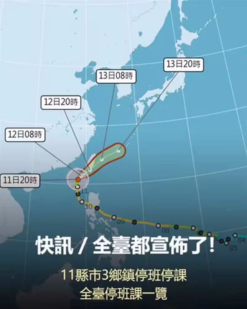 快訊/全台都宣布了!11縣市3鄉鎮停班停課...全台停班課一覽