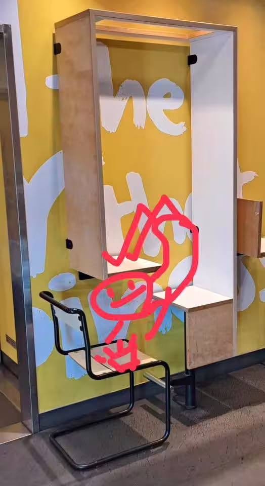 在牆邊則出現木製空間可以擺放食物,然而在椅子上方卻又卡著木板,無論是成人還是孩童,完全沒辦法塞進椅子上那狹窄的空間,這也讓原PO不禁納悶,「這麼潮的桌椅設計!我不知道怎麼坐?」。