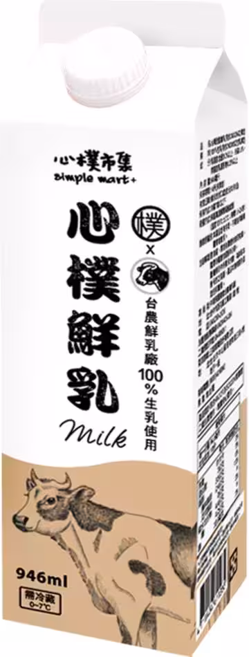 據了解,「心朴鮮奶」是心朴市集與台農合作的聯名商品,也是美廉社自有品牌之一,主打100%生乳、無添加成分。該產品 2019 年上市時936ml售價僅75元,七年來僅小幅調整至79元,價格相當具有競爭力。而美廉社販售的現煮拿鐵,使用的正是這款鮮奶。
