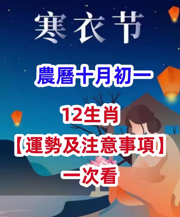 農曆十月初一「寒衣節」12生肖【運勢及注意事項】一次看