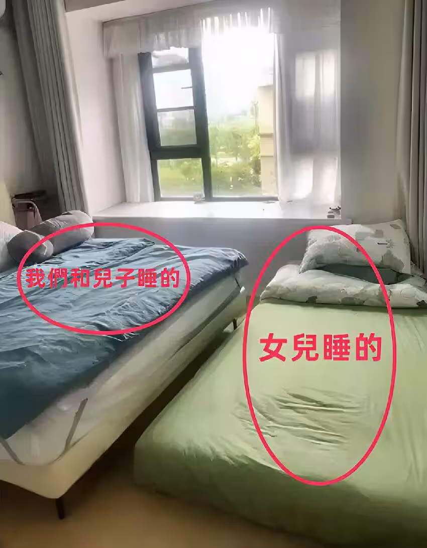 女兒單獨一間,自己和老公、兒子一起睡。