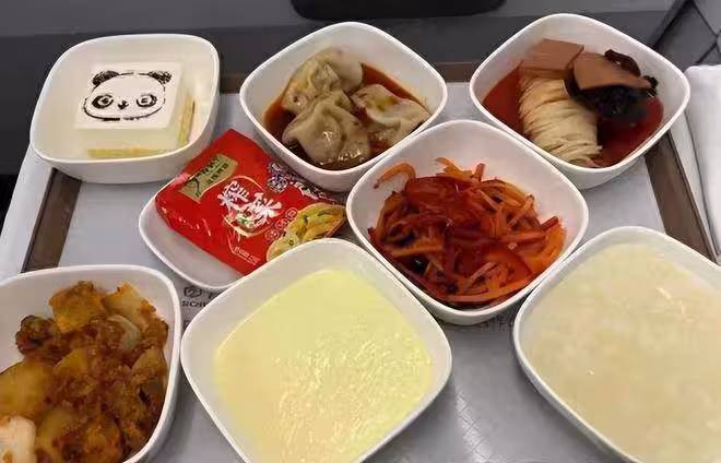 比如擔擔麵、水煮魚、缽缽雞、冒菜火鍋、豆花鍋盔、水煮魚,滿足乘客味蕾,讓人流下口水。