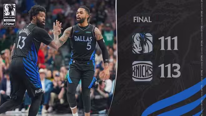 歐文濃眉哥弗拉格萊夫利全部休戰,然後獨行俠還能與東部第三的尼克斯打得有來有往,最終111-113惜敗。