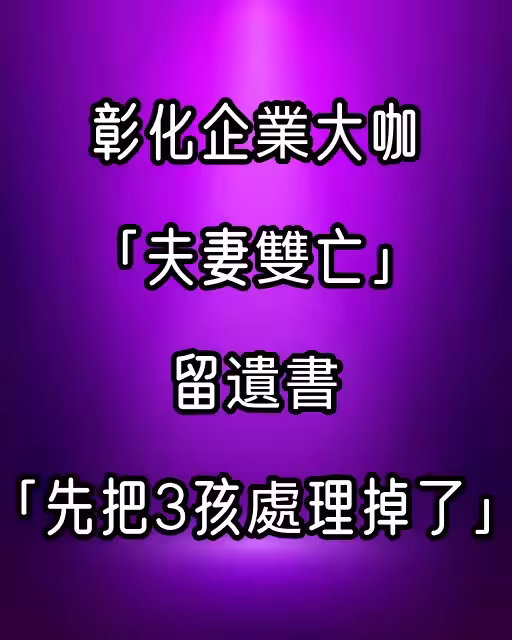 彰化企業大咖「夫妻雙亡」...留遺書「先把3孩處理掉」