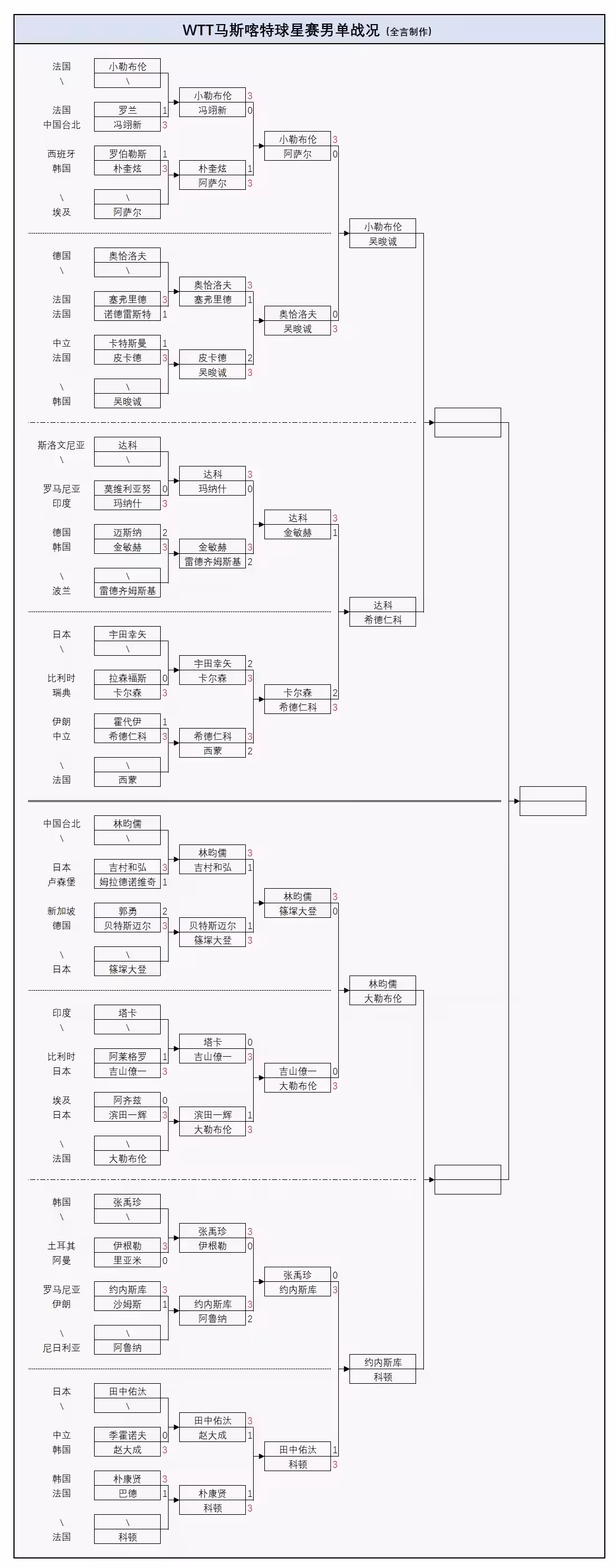 WTT球星賽:男單8強誕生!3位世界冠軍均出局,日本全軍覆沒_勒布倫_決賽_法國