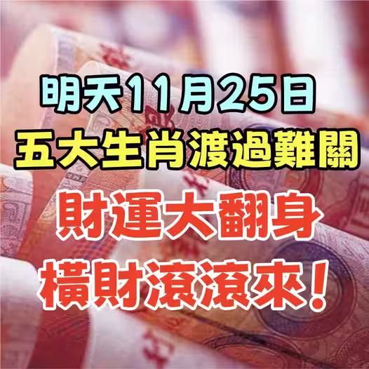 明天11月25日,五大生肖渡過難關,財運大翻身,橫財滾滾來