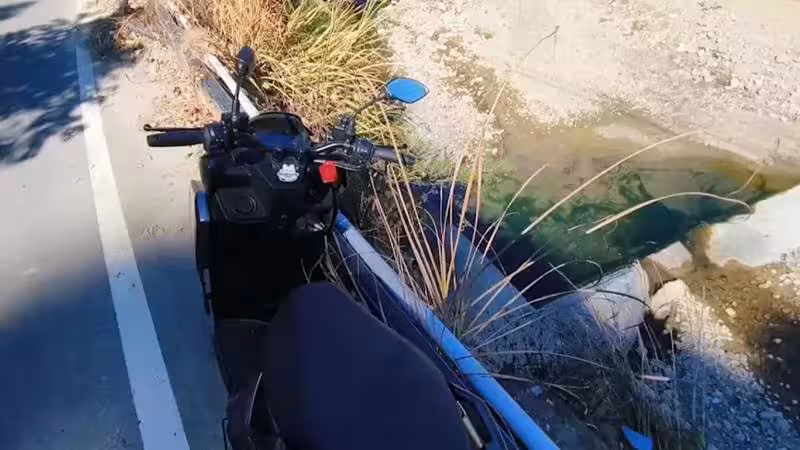 事故現場留有女騎士的機車和掉落河床的安全帽。附近住戶表示,周末常有許多學生在該區域活動,事情也比較多,車速都不慢。