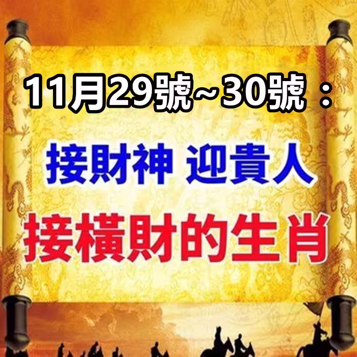 11月29號~30號:接財神 ,迎貴人,接橫財的生肖