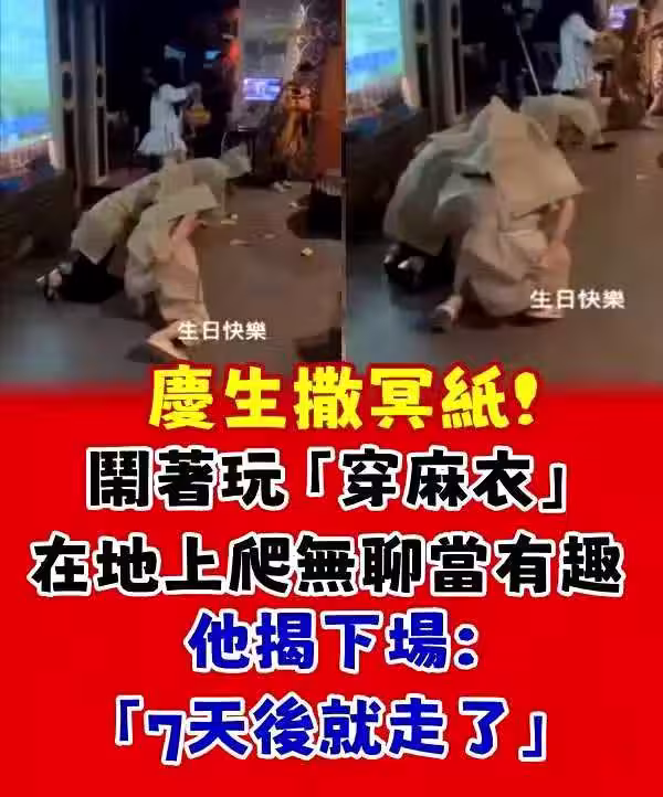 慶生撒冥紙!鬧著玩「穿麻衣跪地上爬」...他揭下場「7天後就走了」