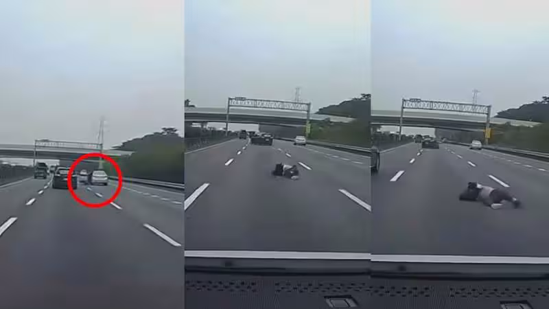 離譜畫面曝!國道疾駛「車內掉出一個人」駕駛連滾帶爬…驚嚇指數破表