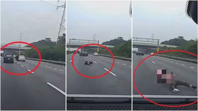 離譜畫面曝!國道疾駛「車內掉出一個人」駕駛連滾帶爬…驚嚇指數破表