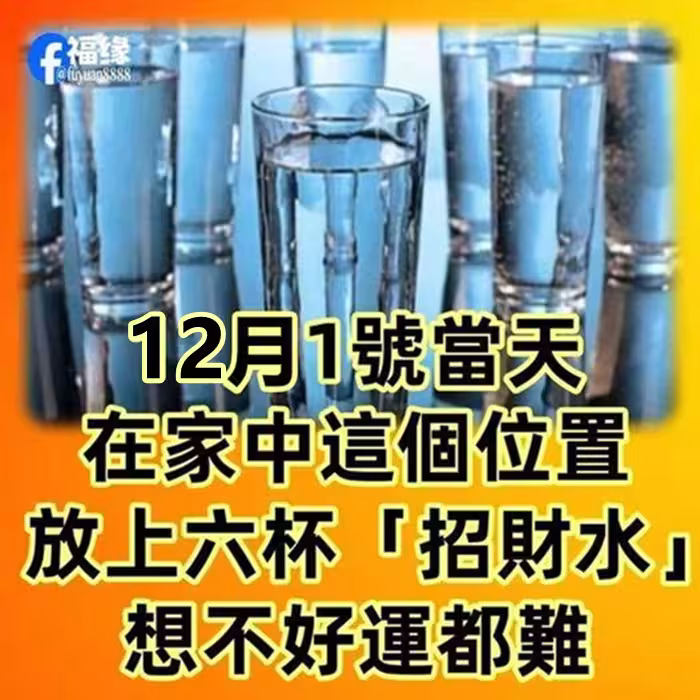 12月1號當天,在家中這個位置,放上六杯「招財水」想不好運都難