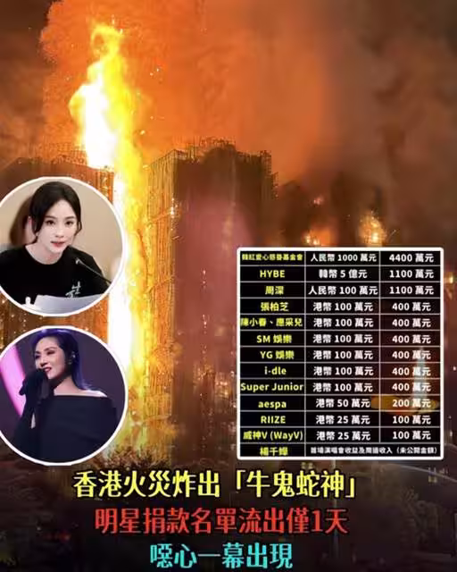 香港火災炸出「牛鬼蛇神」 明星捐款名單流出僅1天 噁心一幕出現